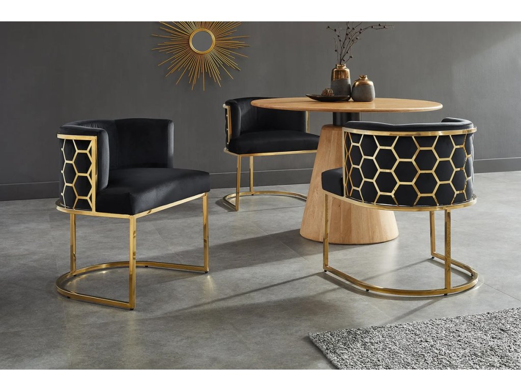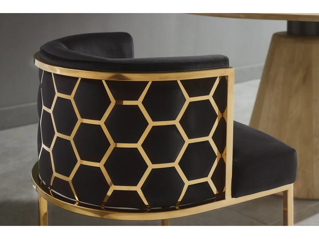 Pozdvihněte svůj prostor s židlí ELEGANCE – kde se plyšový černý samet setkává s výraznými zlatými akcenty.