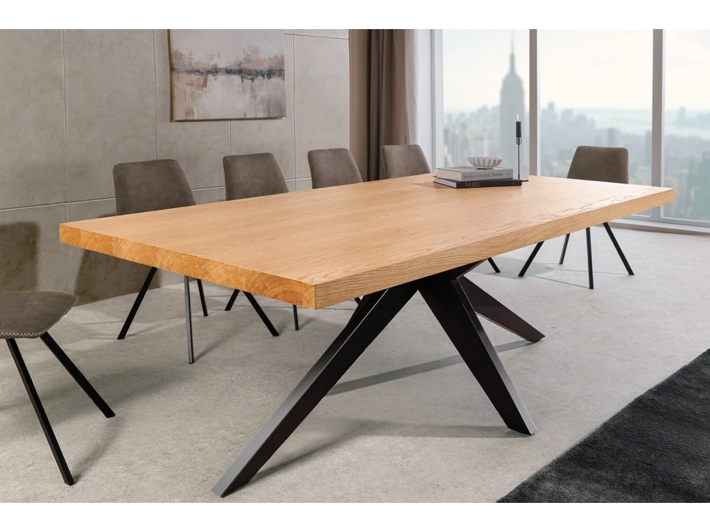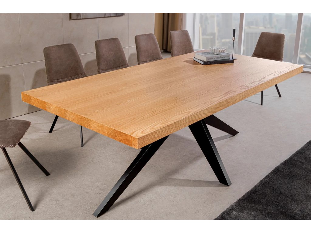 Přeneste ke svému stolu sílu a eleganci, která přetrvá věky. Jídelní stůl ZEUS je ztělesněním nadčasového designu, kde se přírodní dubové prvky potkávají s nekompromisním černým kovovým rámem. Toto spojení vytváří masivní a stabilní základ pro všechna vaše důležitá setkání.