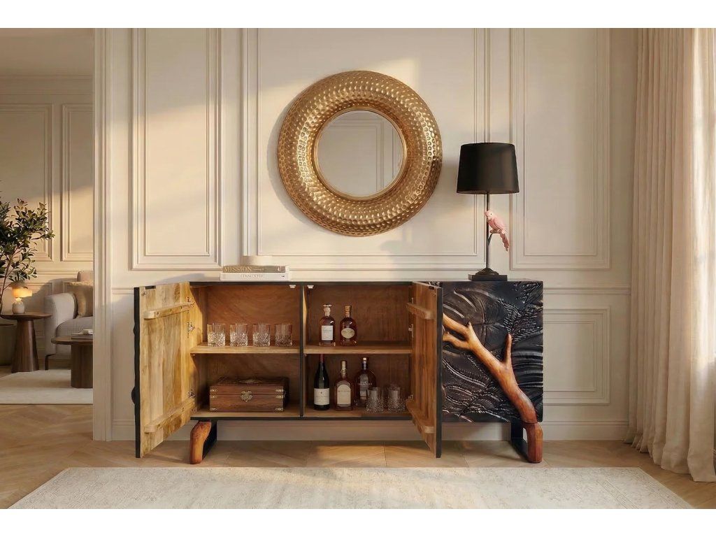 Barová skříň s 3D řezbou - Scorpion, černá