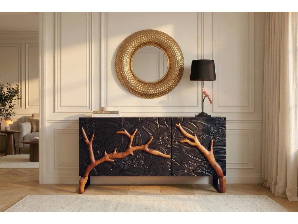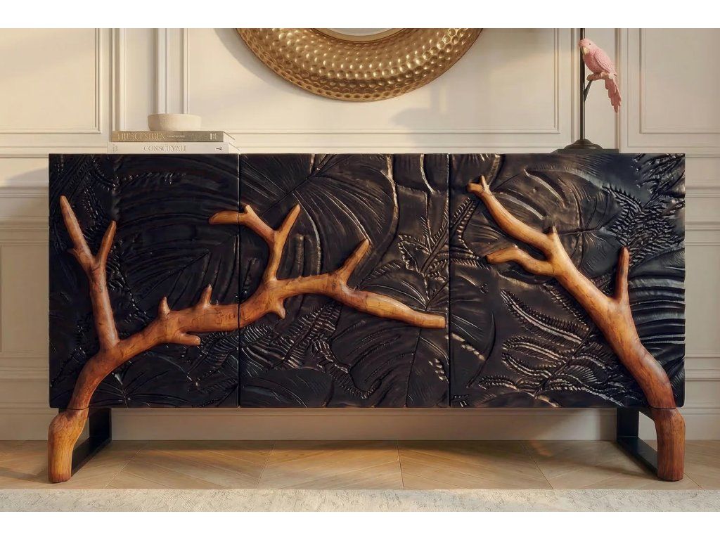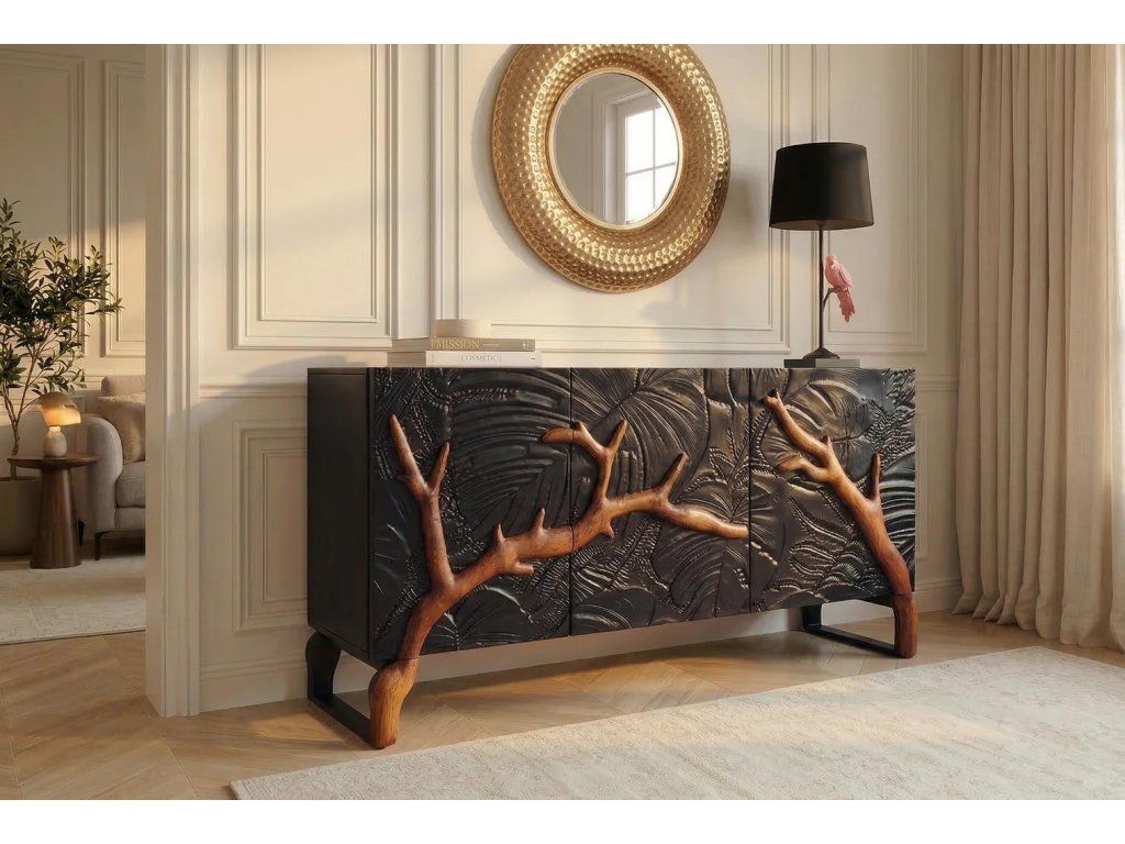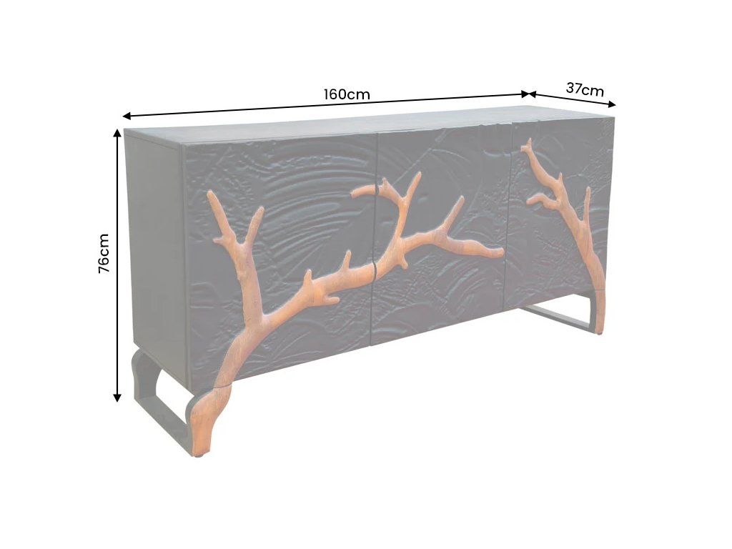 Komoda FOREST - 3D mangové dřevo černohnědá - 160 cm