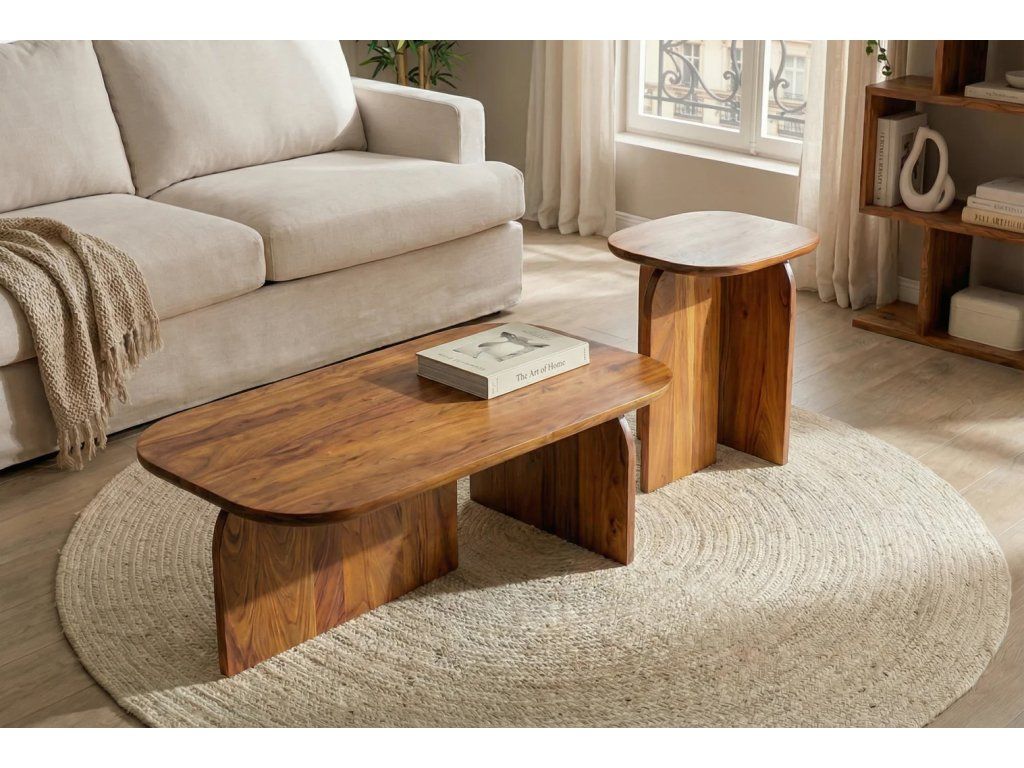 Designová sada konferenčních stolků GATSBY z masivního akáciového dřeva představuje dokonalé spojení přírodní krásy, funkčnosti a moderní estetiky. Díky praktickému řešení dvou samostatných prvků můžete stolky využívat společně jako dominantní prvek obývacího prostoru, nebo je rozdělit podle aktuální potřeby.