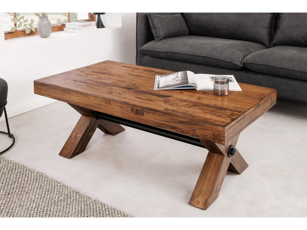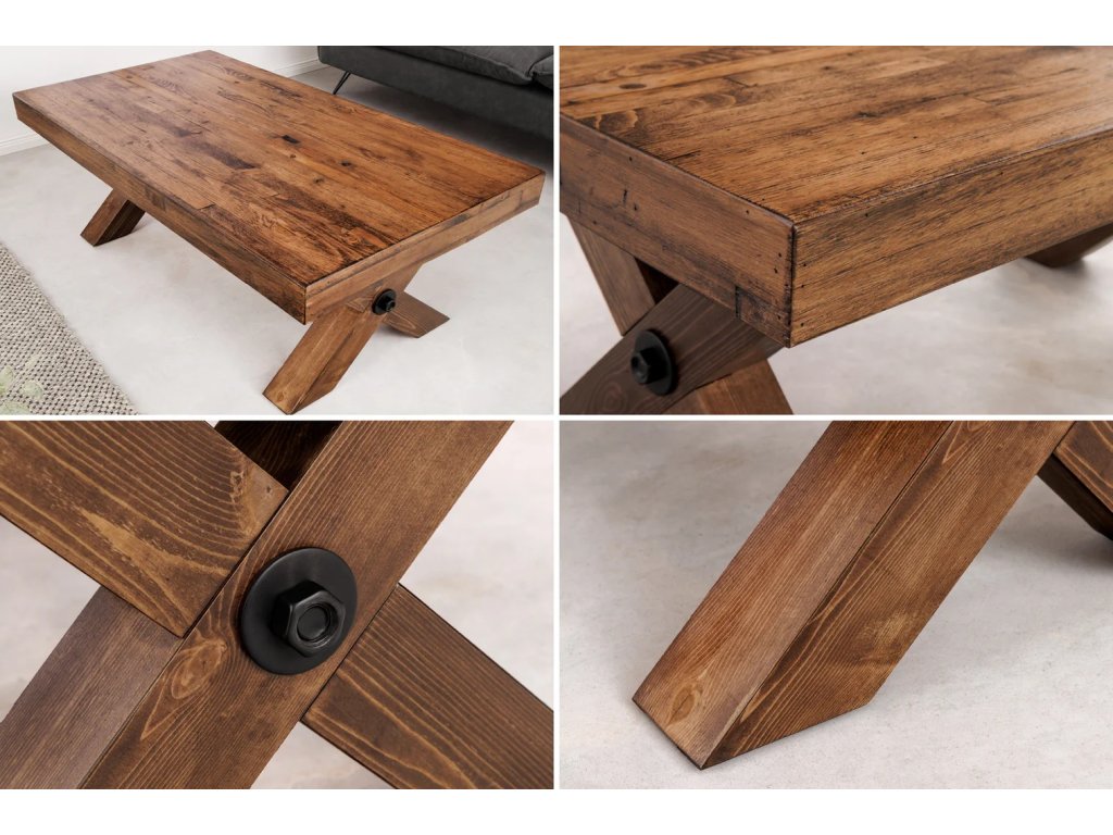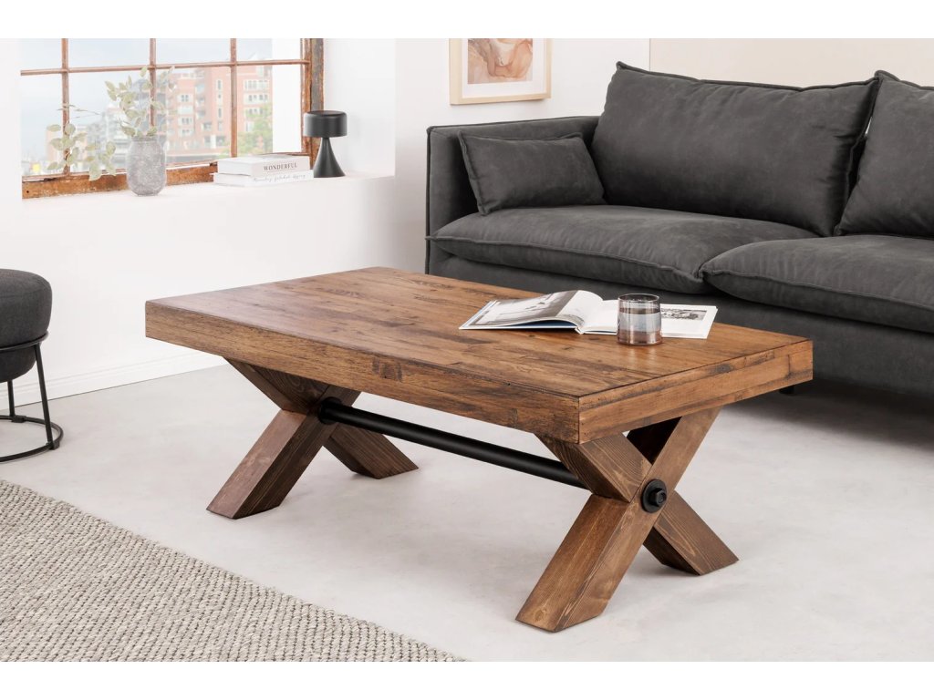 Konferenční stolek GOLIATH není jen obyčejným nábytkem – je to designové prohlášení. Toto unikátní spojení masivního borovicového dřeva a robustní kovové konstrukce vytváří nepřehlédnutelný prvek, který se stane přirozeným středobodem vašeho obývacího pokoje. Vneste do svého domova kousek divoké přírody zkrocené moderními liniemi.