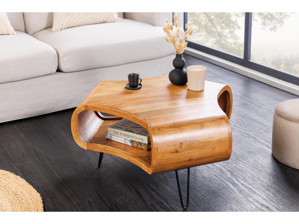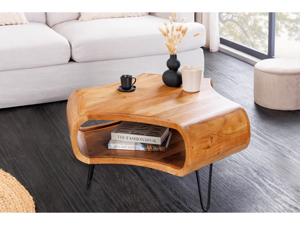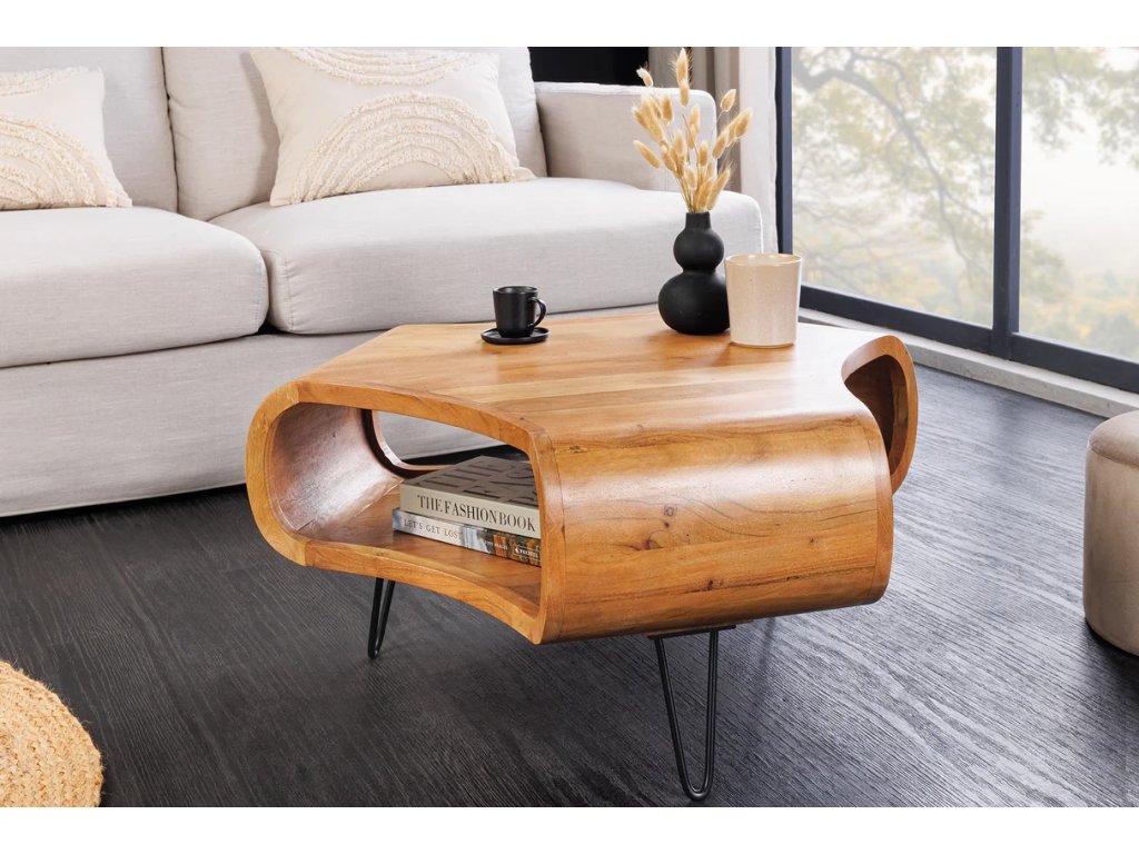 Začněte svůj den stylově díky konferenčnímu stolku ORGANIC LIVING, který vnese do vašeho obývacího pokoje hřejivou a moderní atmosféru díky svému úžasnému akáciovému dřevu a elegantním kovovým nohám. Tato kráska v sobě spojuje odolnost a pohodový chlad, což z ní činí ideální místo pro vaše občerstvení, časopisy a chvíle odpočinku s přáteli.
