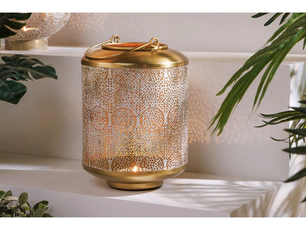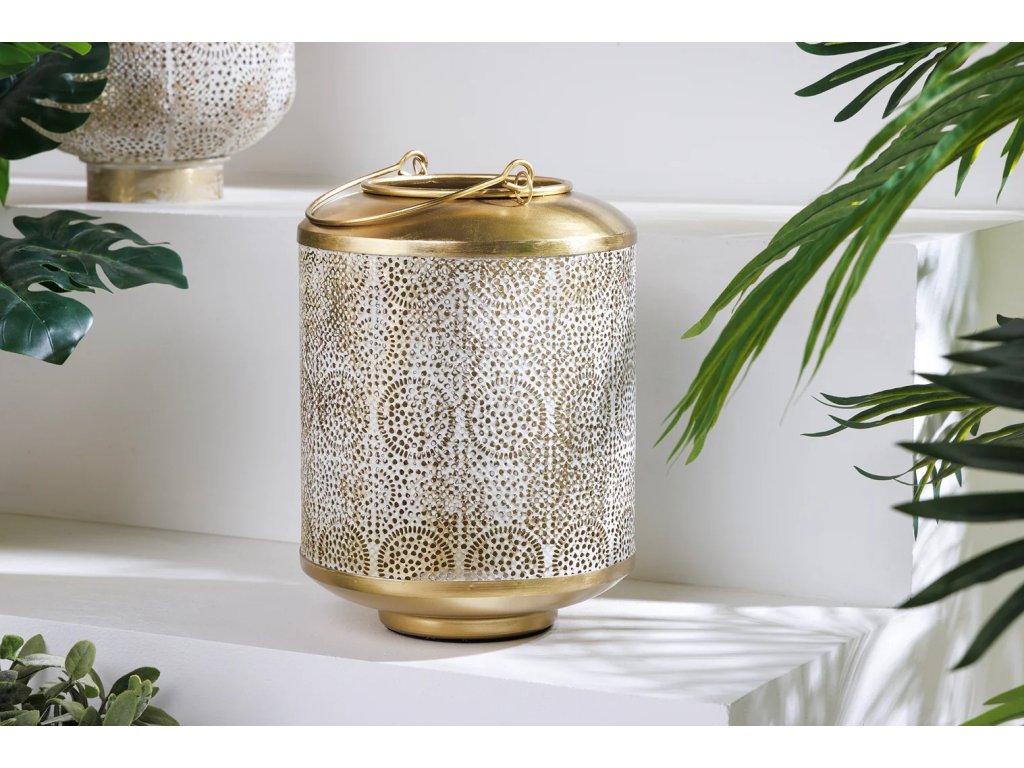 Zlatá lucerna ORIENT vnese do každé místnosti hřejivou atmosféru a nadčasové kouzlo. Díky ručně zpracované patině je každý kus unikátním originálem, který v interiéru zazáří jako dominantní ústřední prvek i stylový doplněk. Nechte se okouzlit útulnou zlatavou září a nádechem orientálního luxusu, který promění váš prostor v dokonalou oázu klidu a harmonie.