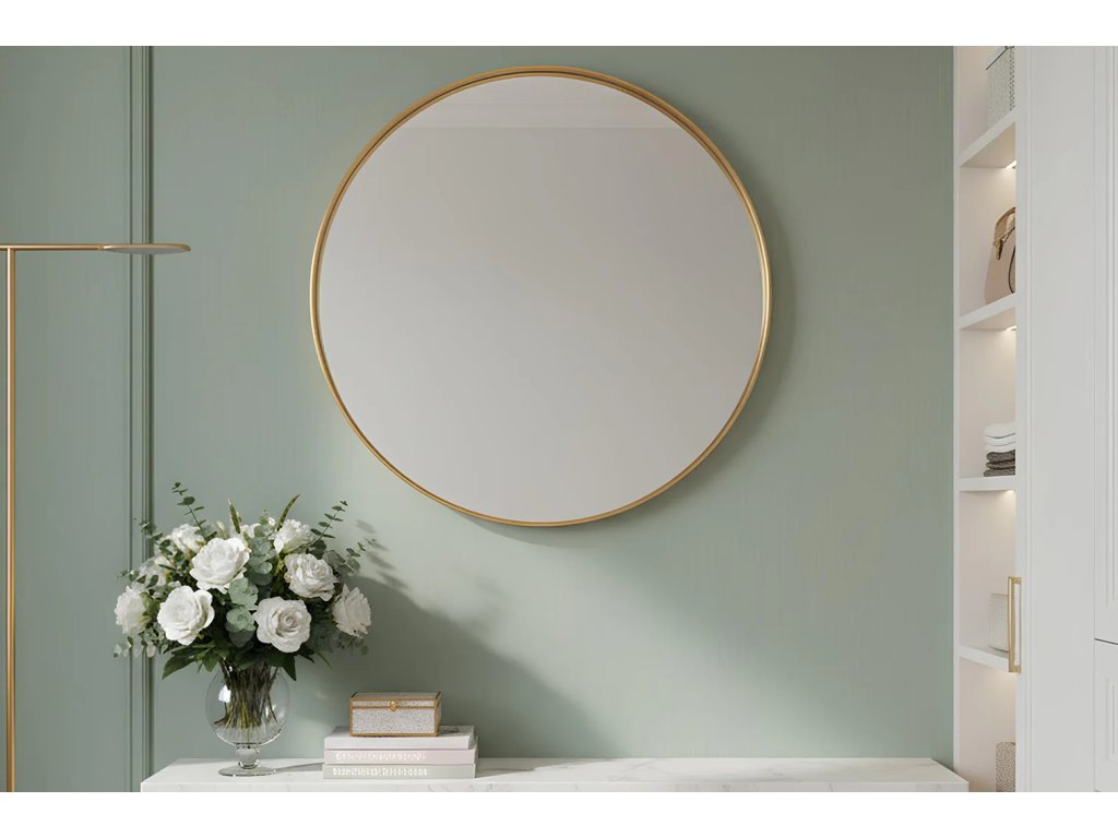 Dodejte svému domovu luxusní akcent s kulatým zrcadlem PORTRAIT. Jeho elegantní hliníkový rám ve zlatém provedení v sobě spojuje moderní minimalismus s nádechem noblesy, díky čemuž se stane stylovou dominantou každé místnosti.