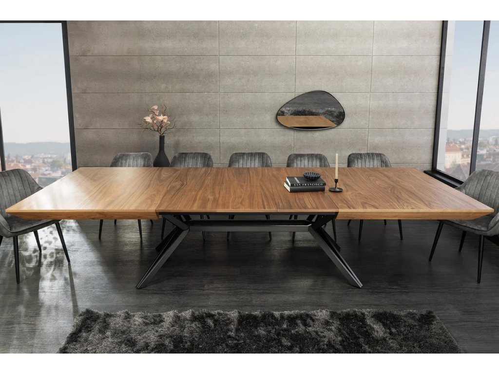 Shromážděte se ve velkoleposti s GIANT – kde se každé jídlo promění v mistrovské dílo. Tento rozkládací jídelní stůl kombinuje teplo přírodního ořechového dřeva s elegantním černým kovovým rámem a je připraven hostit cokoli od útulných snídaní až po slavnostní hostiny.